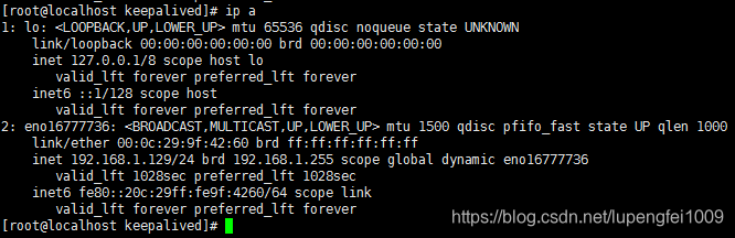 在192.168.1.128和192.168.1.129下分别执行以下指令启动keepalived